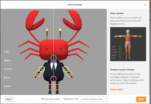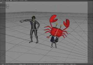 カニ部長さんがサンバを踊れました。手とかグチャグチャな部分は、仕事で完璧にやりたいときの詰めポイント。このあとコンストレイトを調整したら目と鼻が遅延したようにズレるのも解決できました。